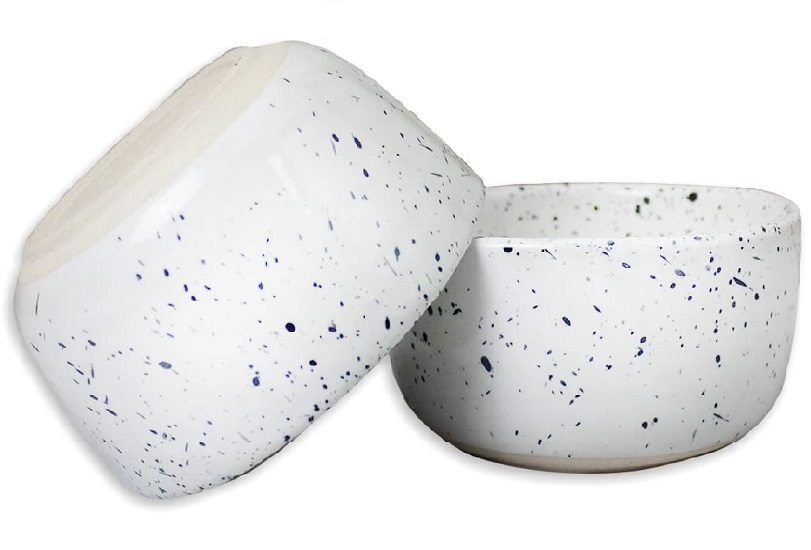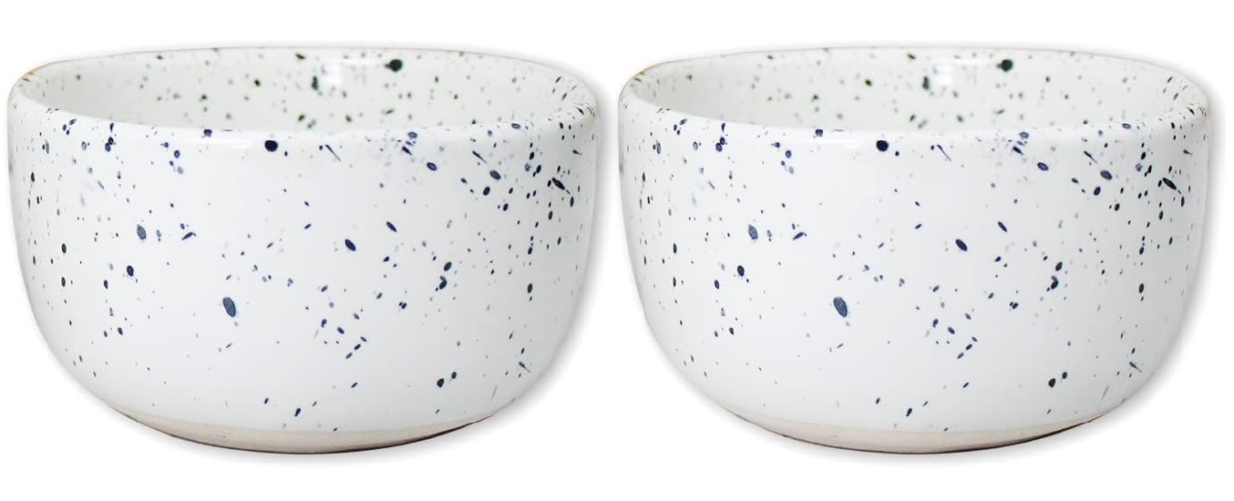 Ceramic Hand-Molded Speckled Spotted Miso | Small Soup Bowl x 2, Glossy White