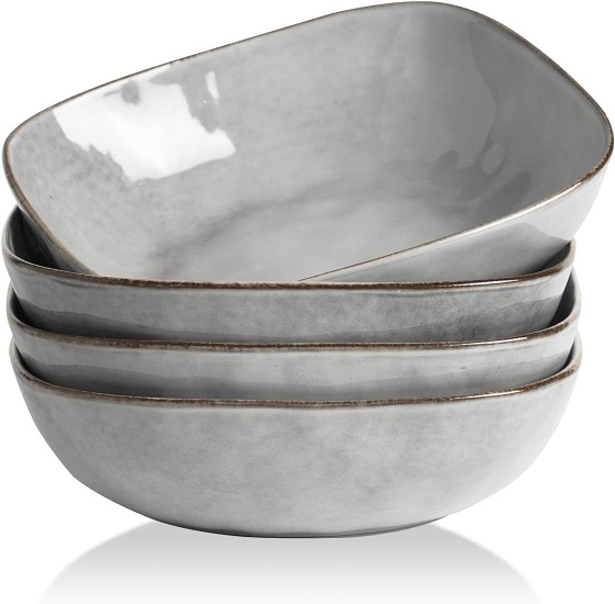 【Ideal Gift】Set of 4 large bowls for eating with exquisite glaze, and it is easy to clean and stacking nicely without taking up a lot of space, which is a excellent gift for housewarming, newlyweds, bridal shower, wedding, Christmas, Thanksgiving, fun celebrations.