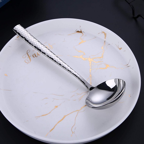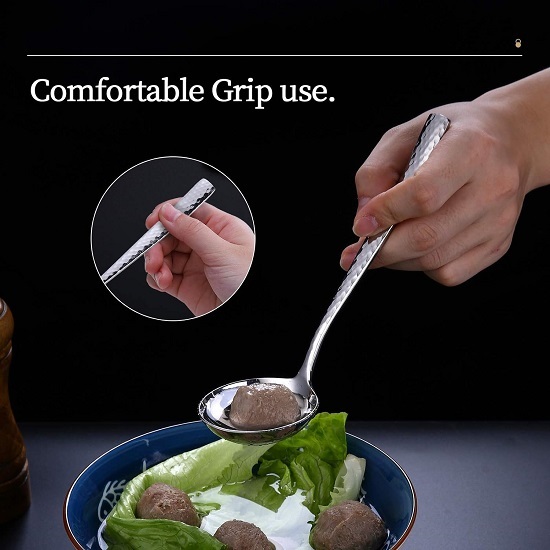 • UNIQUE DESIGN - Stylish hammered design on the front side of handles, Mirror finish always keep shiny, Elegant flatware complements most tableware, enrich your dining experience.