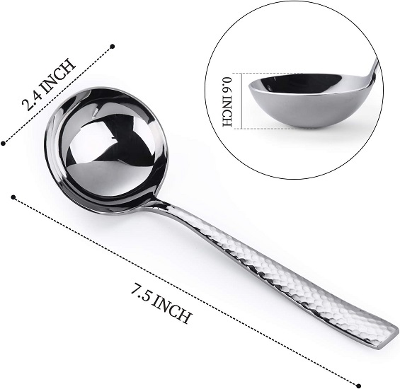 Sauce ladle,7.5 inch Hammered 18/10 1 oz Stainless Steel Small Gravy Soup Serving Ladle for Cooking or Serving Soup Spoon,Dishwasher Safe
