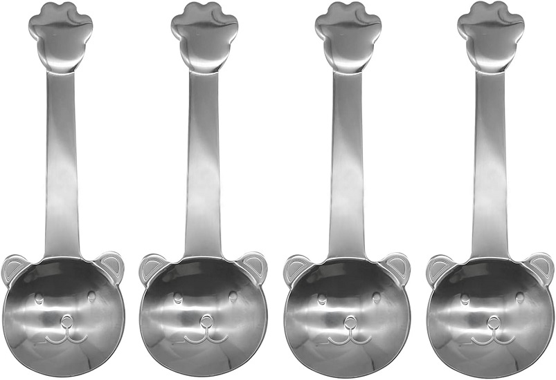 • 【Package】Pack of 4 pieces cute short handle spoon with cartoon bear design, Color: silver.