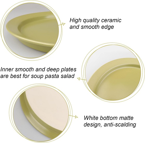• 【High Quality Ceramic】Fired at high temperatures, these ceramic dinner plates will not lose or discolour, and are lead and cadmium free. The high-quality avocado green color is beautiful and durable without harming the health of you and your family.