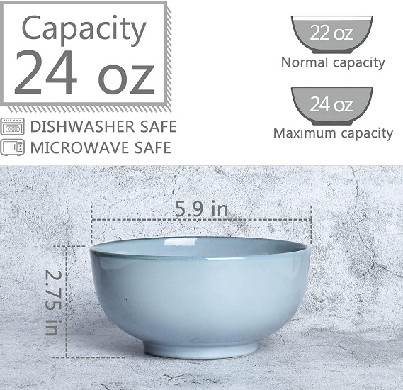 • LARGE CAPACITY: These bowls have a large capacity(24 oz), which will definitely meet your needs for serving different kinds of food. Deep and large soup bowl enough to use for soup, cereal, oatmeal, salad, fruit, rice and noodle without spillage.